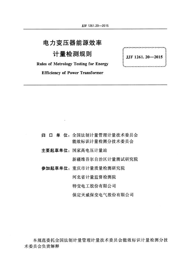 国家高电压计量站、新疆维吾尔自治区计量测试研究院、重庆市计量质量检测研究院、河北省计量监督检测院、特变电工股份有限公司、保定天威保变电气股份有限公司