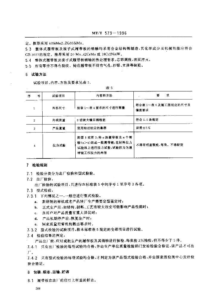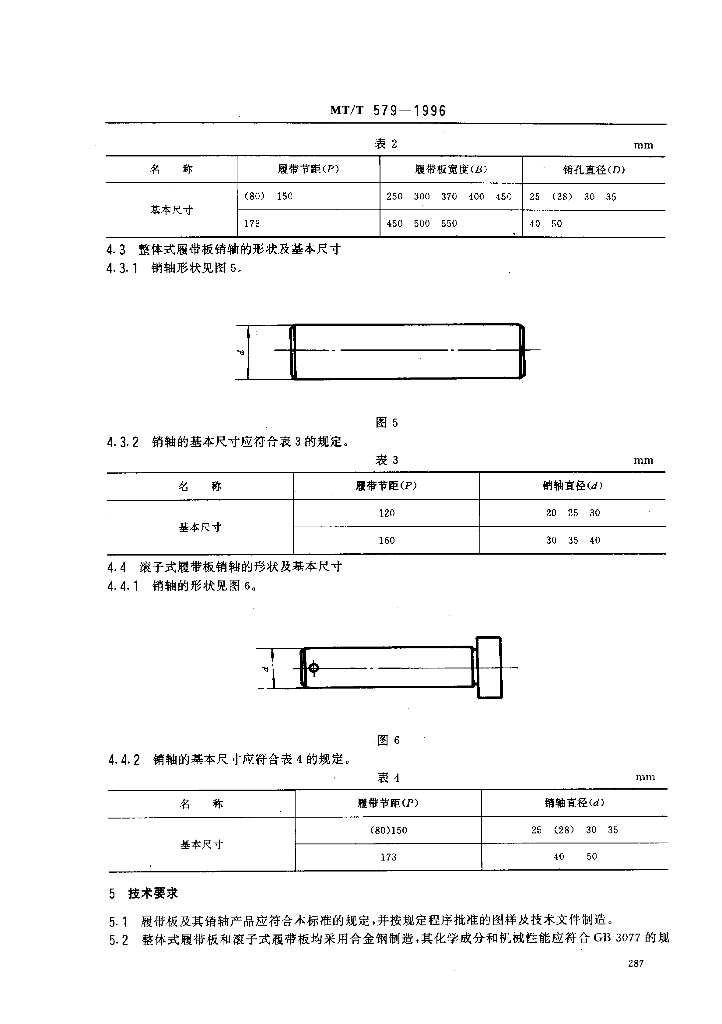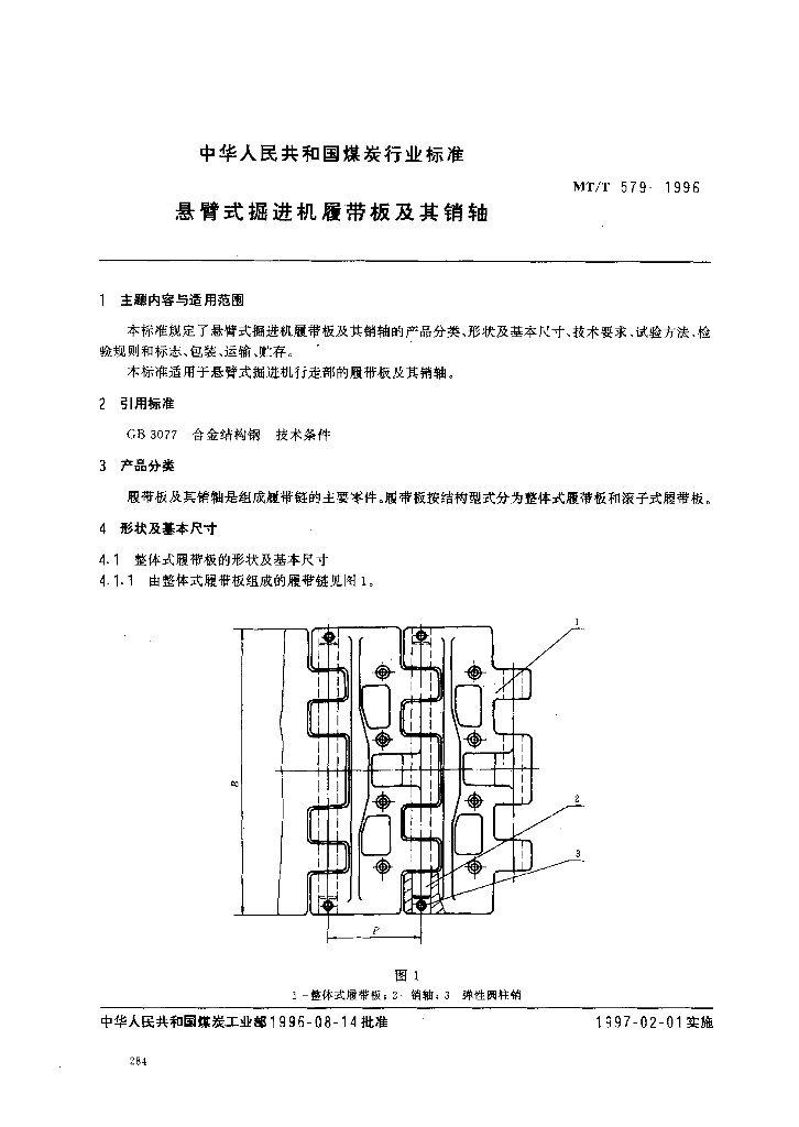 MT/T 579-1996 悬臂式掘进机履带板及其销轴
