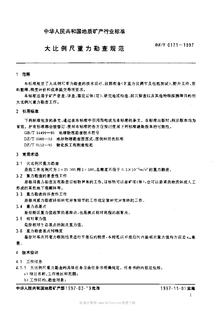 DZ/T 0171-1997 大比例尺重力勘查规范