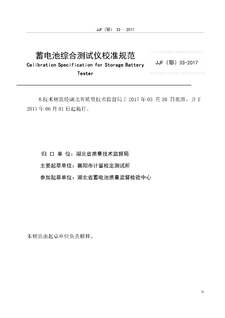 JJF(鄂)33-2017 蓄电池综合测试仪校准规范