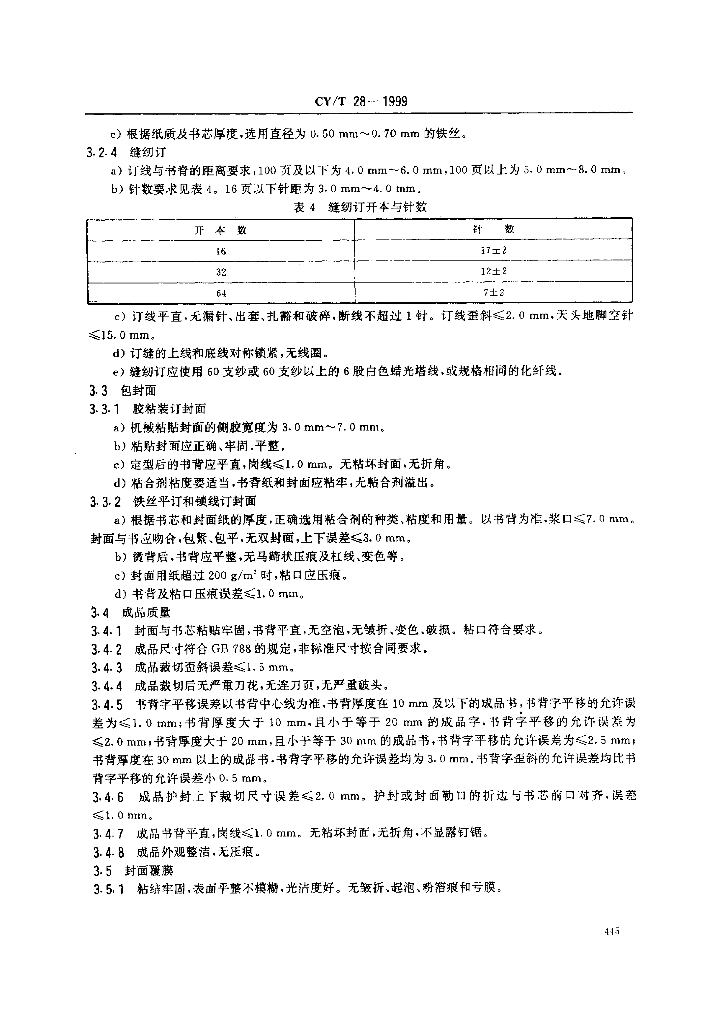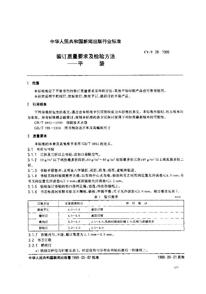 CY/T 28-1999 装订质量要求及检验方法—平装