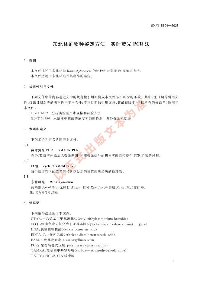 SN/T 5604-2023 东北林蛙物种鉴定方法 实时荧光PCR法