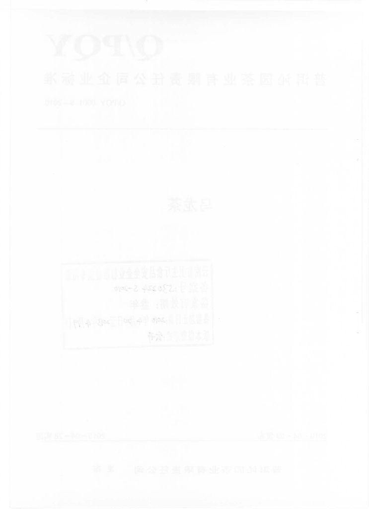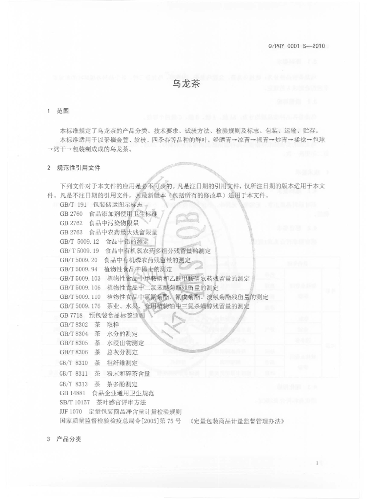 Q/PQY 0001S-2010 乌龙茶