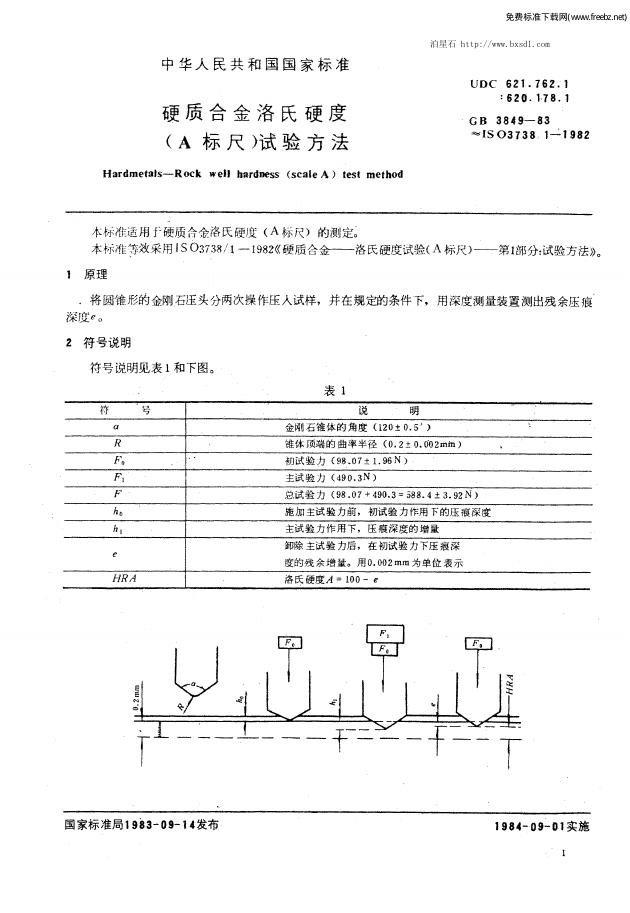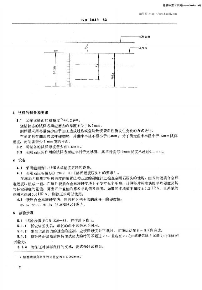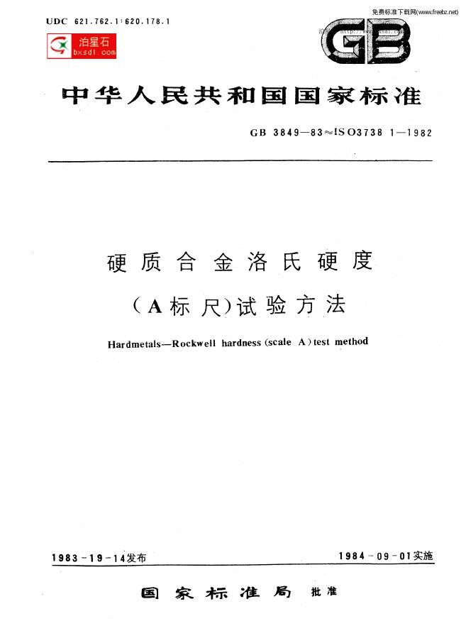 GB/T 3849-1983 硬质合金洛氏硬度 A标尺 试验方法