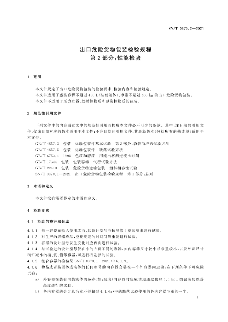 SN/T 0370.2-2021 出口危险货物包装检验规程 第2部分:性能检验