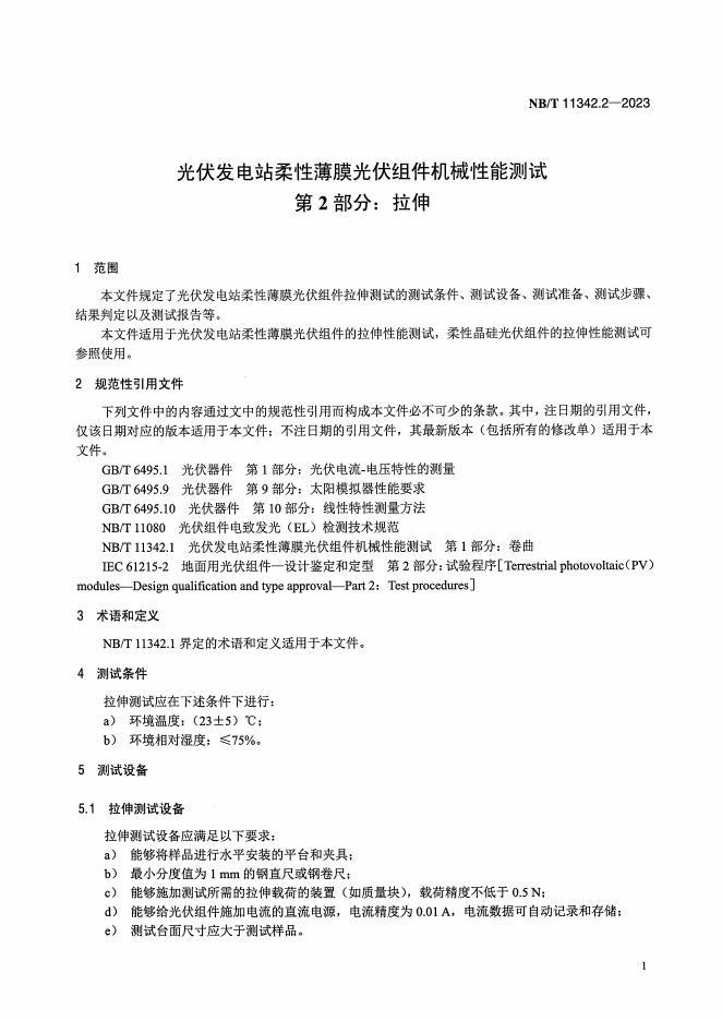 NB/T 11342.2-2023 光伏发电站柔性薄膜光伏组件机械性能测试 第2部分:拉伸