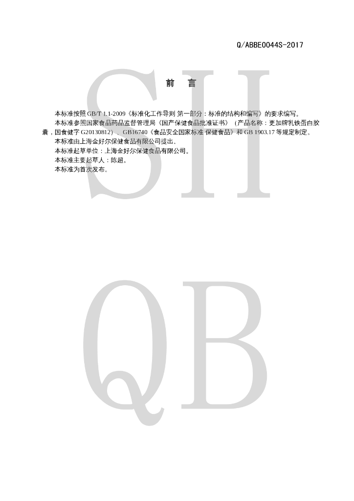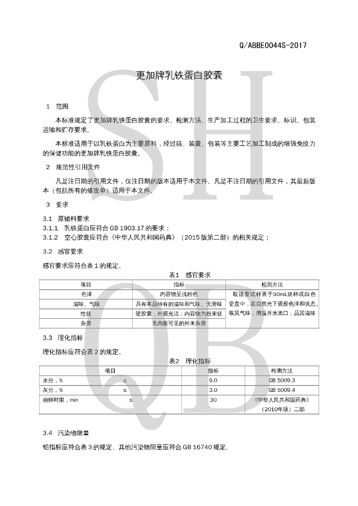 Q/ABBE 0044S-2017 更加牌乳铁蛋白胶囊