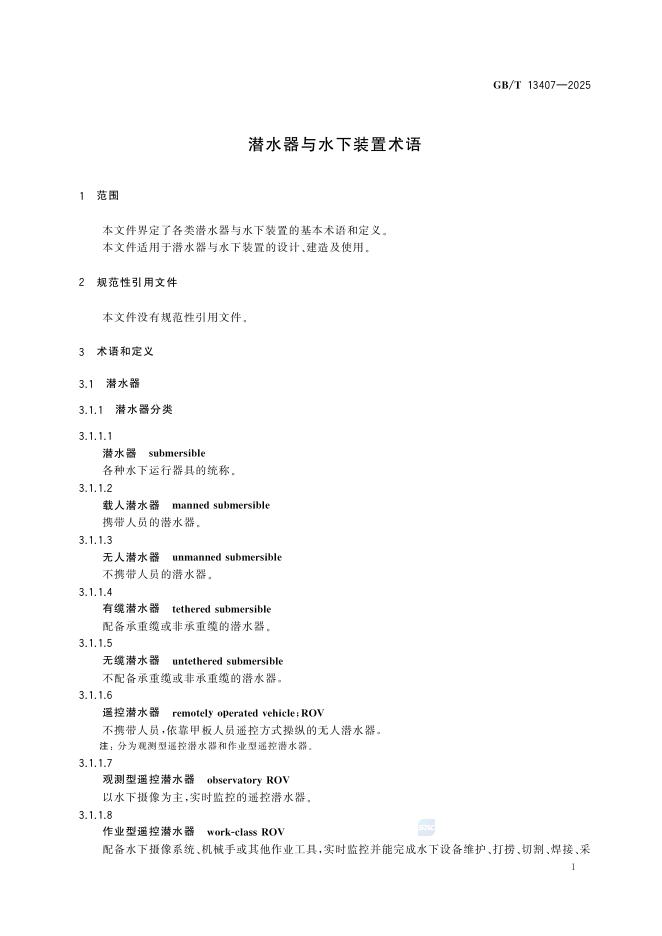 GB/T 13407-2025 潜水器与水下装置术语