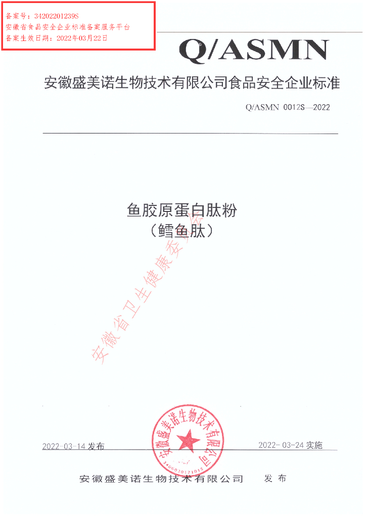 Q/ASMN 0012S-2022 鱼胶原蛋白肽粉(鳕鱼肽)