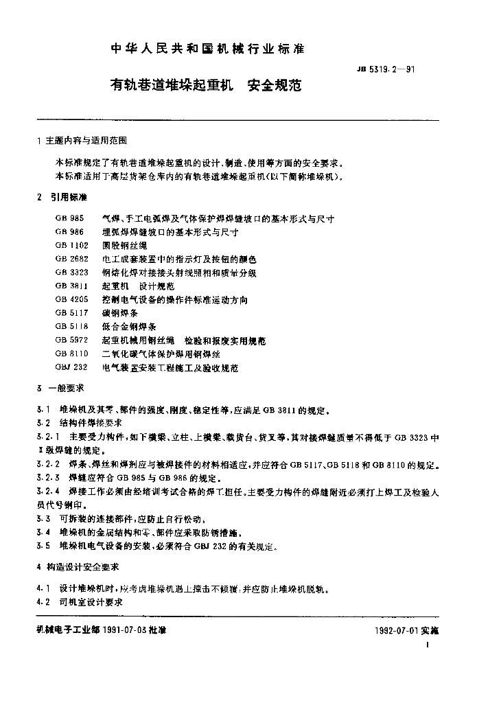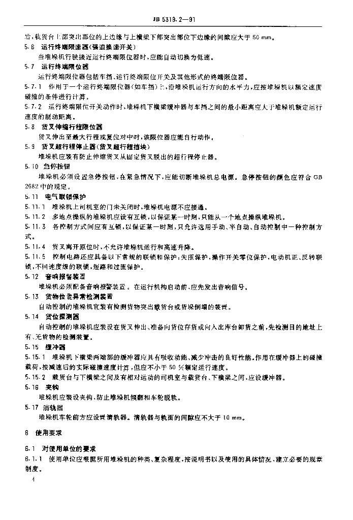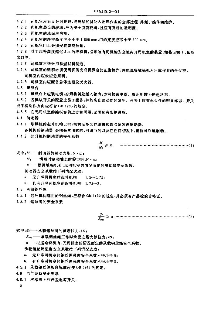 JB 5319.2-1991 有轨巷道堆垛起重机 安全规范