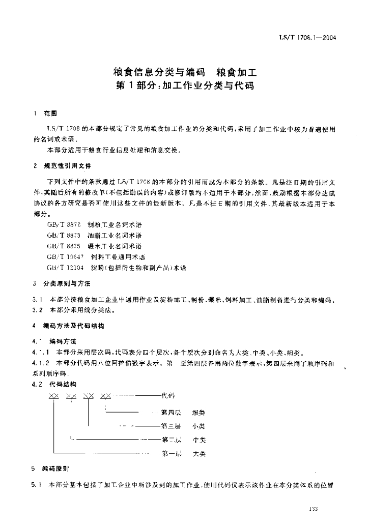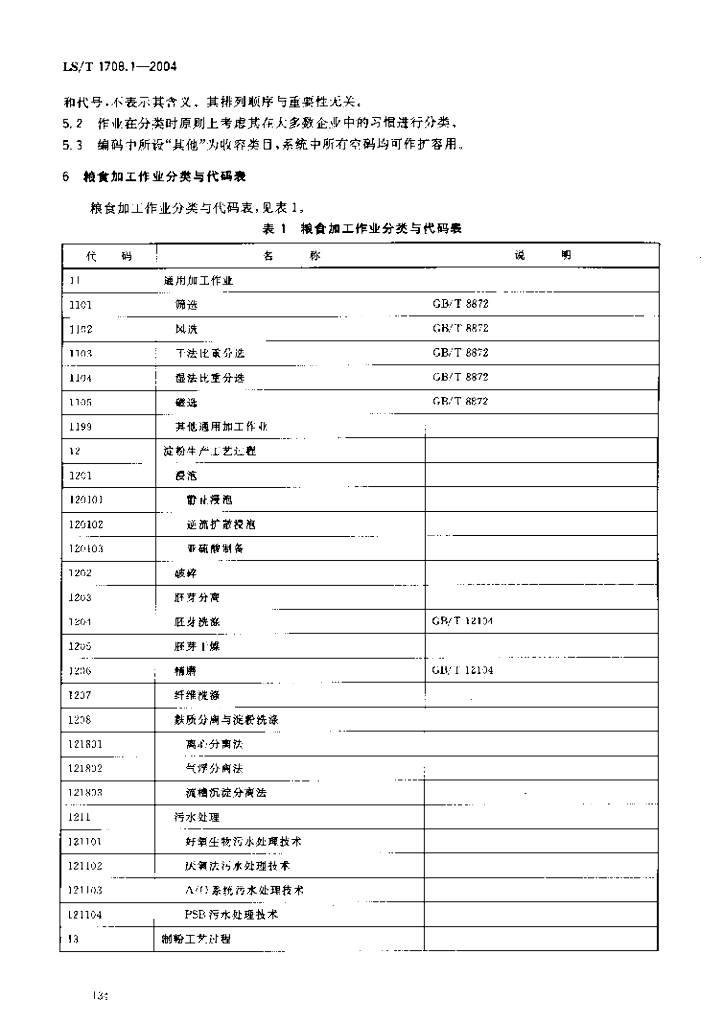 LS/T 1708.1-2004 粮食信息分类与编码 粮食加工 第1部分:加工作业分类与代码