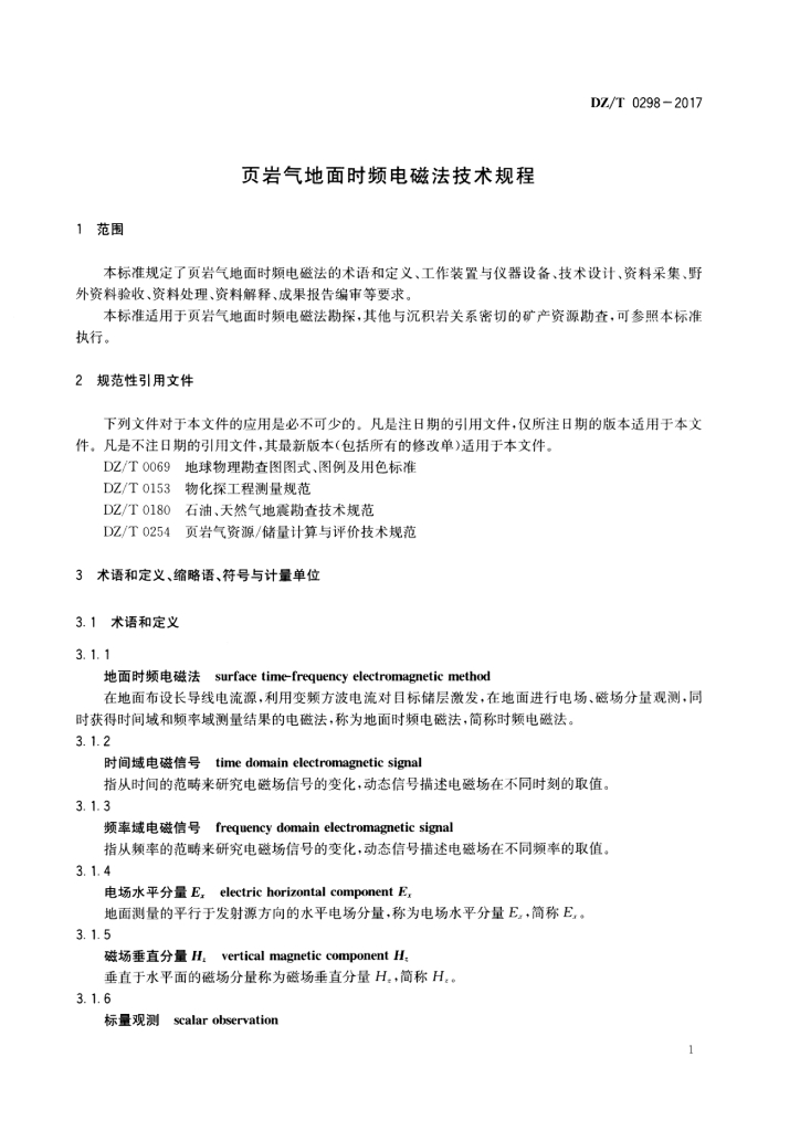DZ/T 0298-2017 页岩气地面时频电磁法技术规程