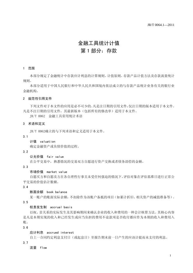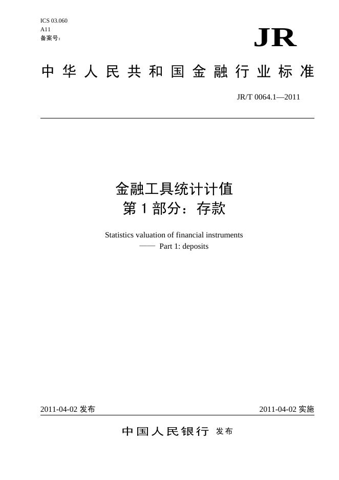 JR/T 0064.1-2011 金融工具统计计值 第1部分:存款