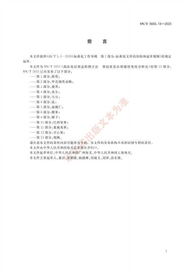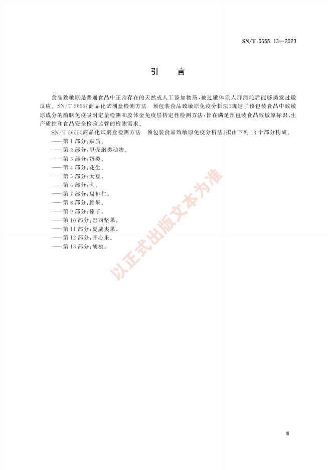 SN/T 5655.13-2023 商品化试剂盒检测方法 预包装食品致敏原免疫分析法 第13部分:胡桃