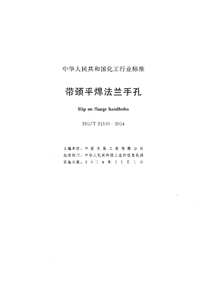 HG/T 21530-2014 代替 HG/T 21530-2005 带颈平焊法兰手孔