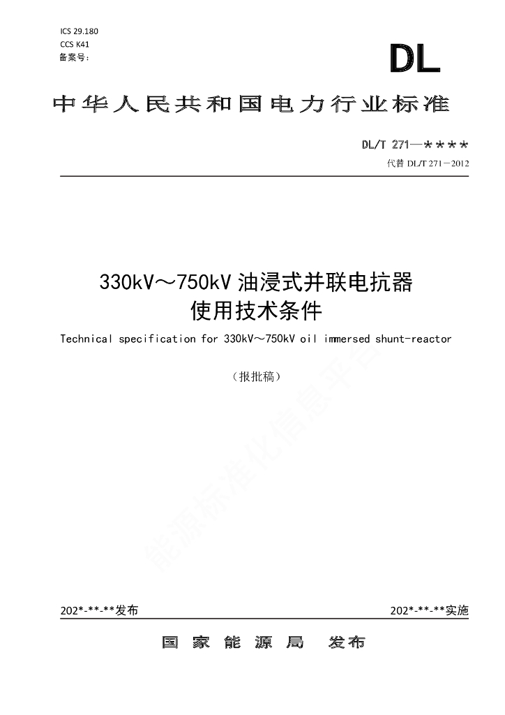 DL/T 271-2022 330kV~750kV油浸式并联电抗器使用技术条件