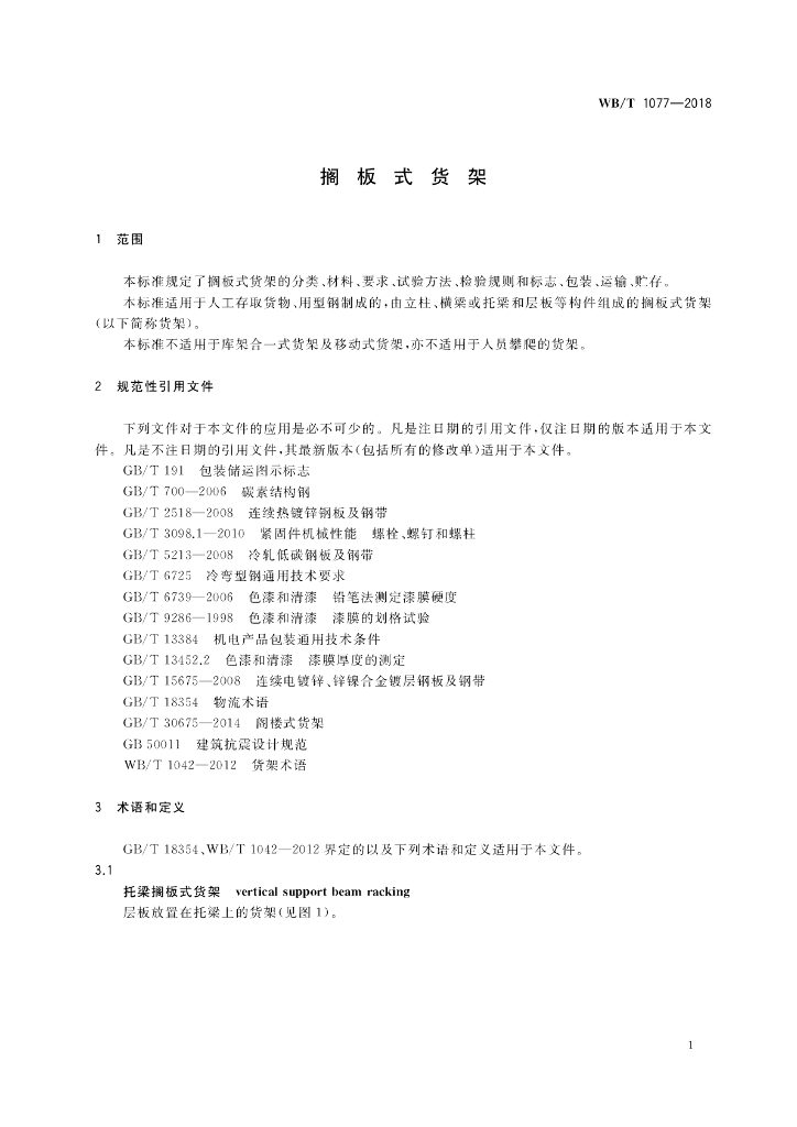 WB/T 1077-2018 搁板式货架