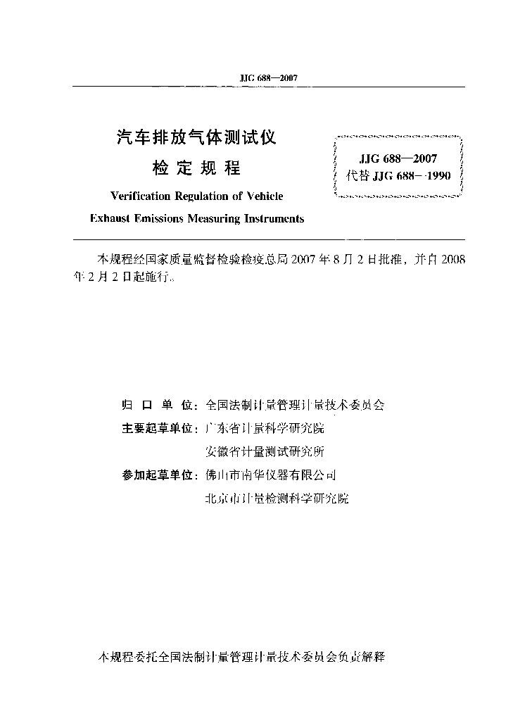 广东省计量科学研究院、安徽省计量测试研究所、佛山市南华仪器有限公司、北京市计量检测科学研究院