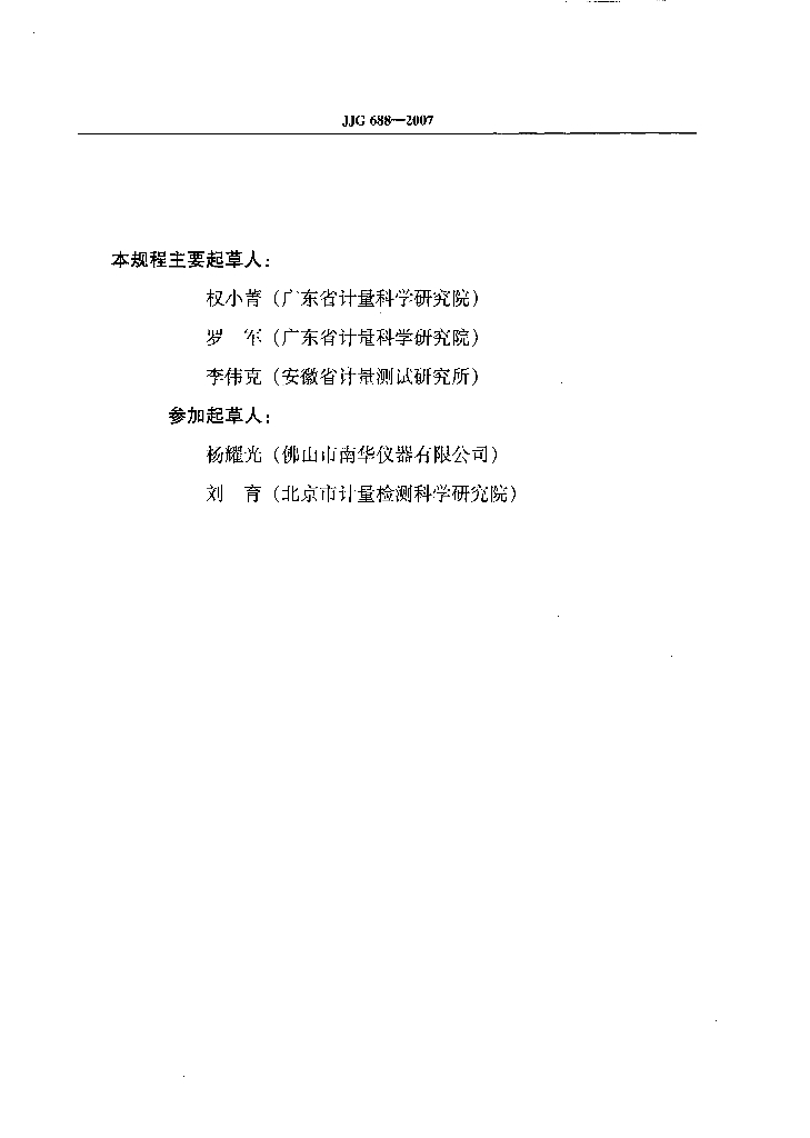 权小菁(广东省计量科学研究院)、罗军(广东省计量科学研究院)、李伟克(安徽省计量测试研究所)、杨耀光(佛山市南华仪器有限公司)、刘育(北京市计量检测科学研究院)