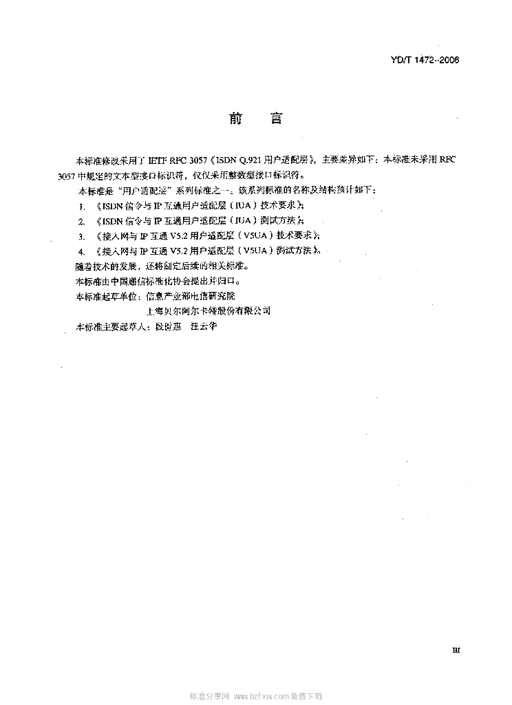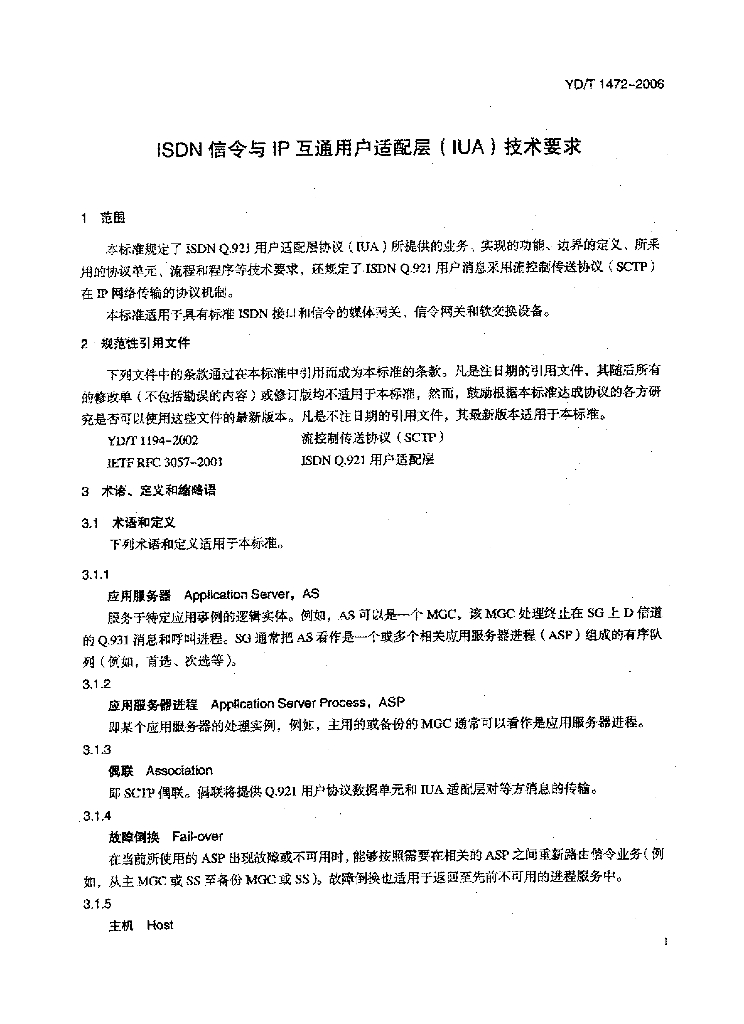 YD/T 1472-2006 ISDN 信令与 IP 互通用户适配层(IUA)技术要求