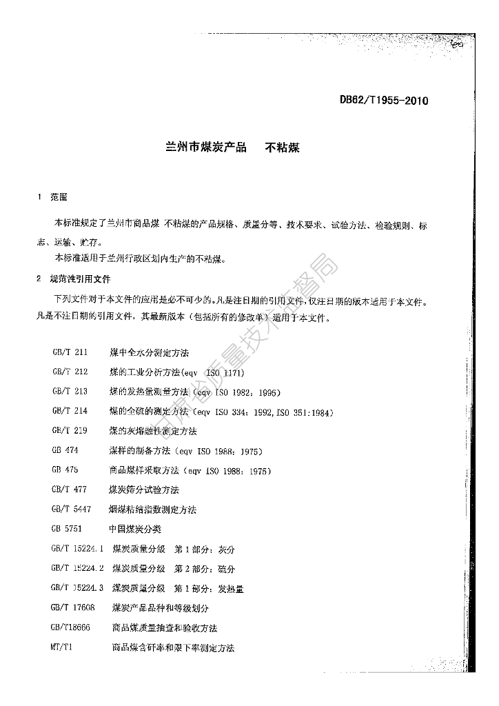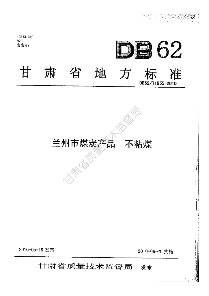 DB62/T 1955-2010 兰州市煤炭产品 不粘煤
