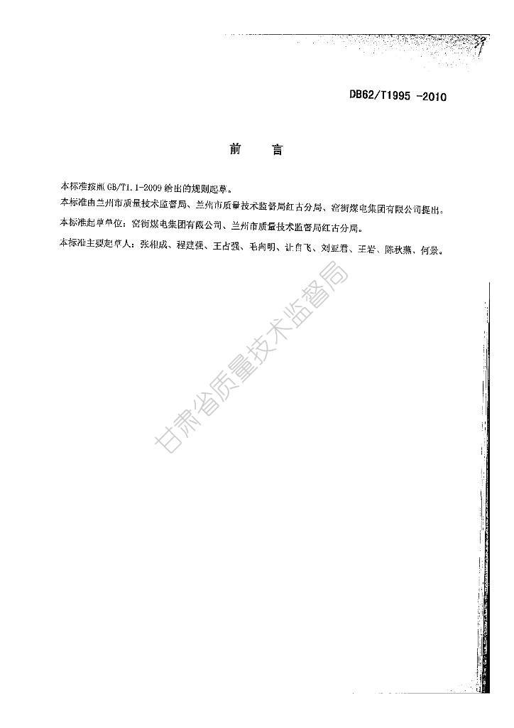 • 提出单位:兰州市质量技术监督局、兰州市质量技术监督局红古分局、窑街煤电集团有限公司
