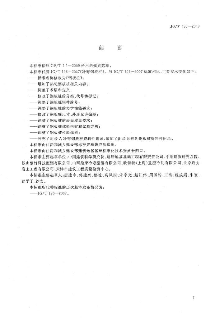 JG/T 196-2018 钢板桩
