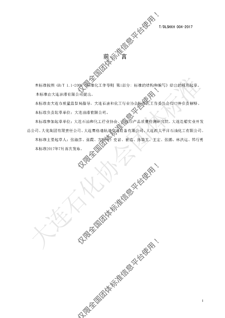 大连油漆有限公司、大连石油和化工行业协会、大连市产品质量检测研究院、大连造船实业开发总公司、大化集团有限责任公司、大连赛格迪轨道交通设备有限公司、大连西太平洋石油化工有限公司