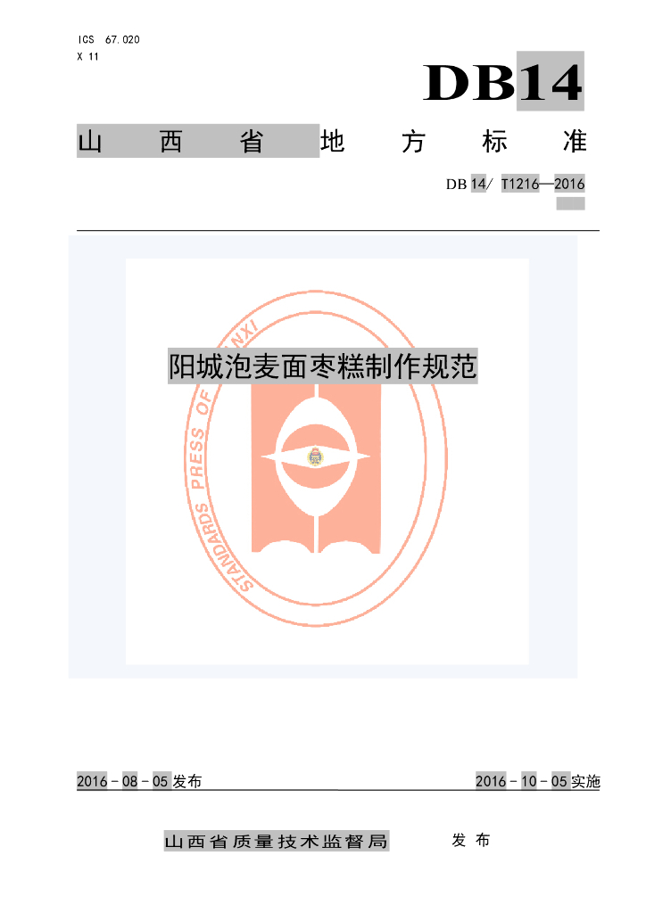DB14/T 1216-2016 阳城泡麦面枣糕制作规范