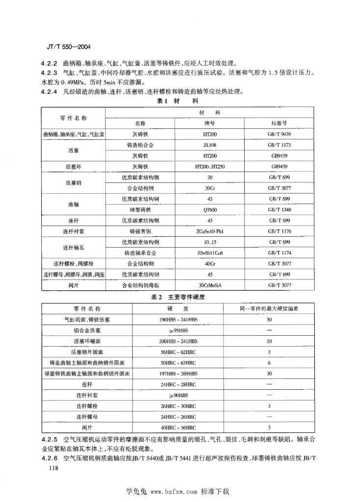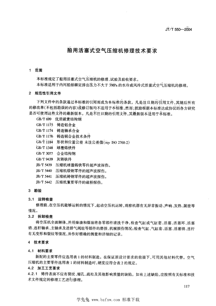 JT/T 550-2004 船用活塞式空气压缩机修理技术要求