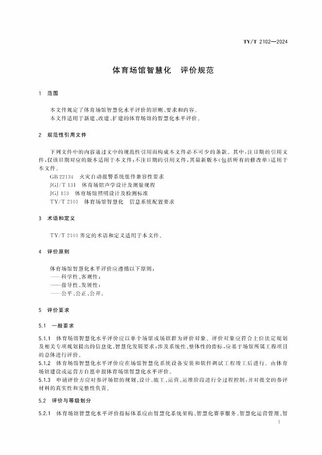 TY/T 2102-2024 体育场馆智慧化 评价规范