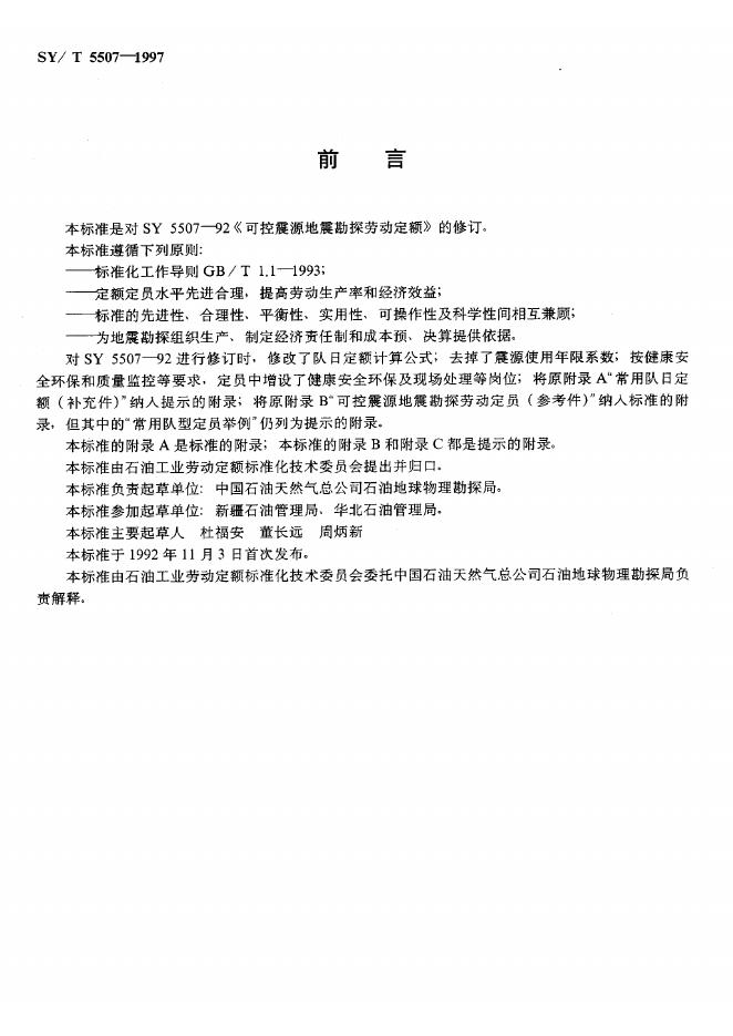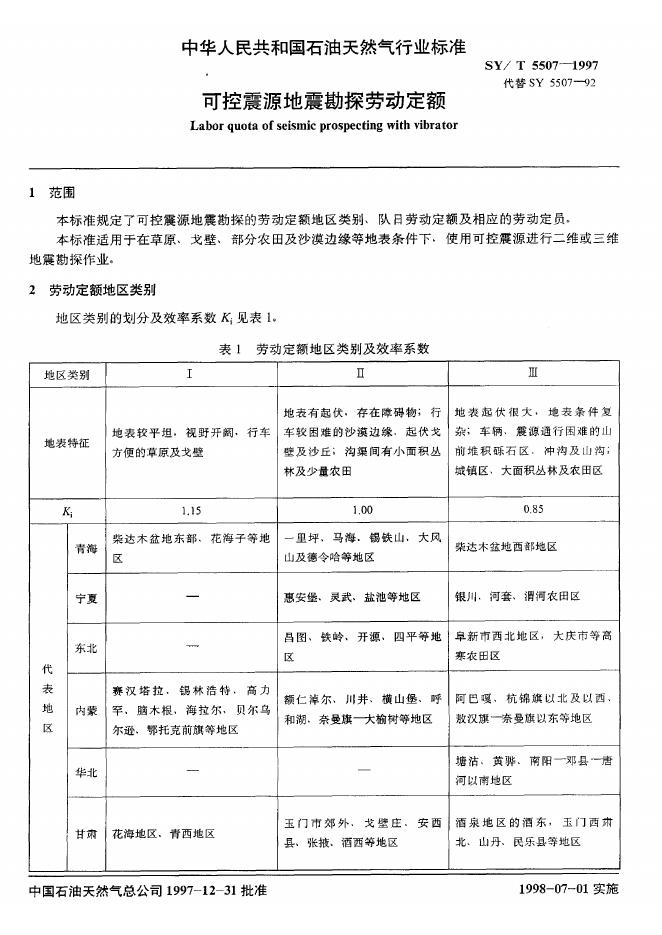 SY 5507-1992 可控震源地震勘探劳动定额