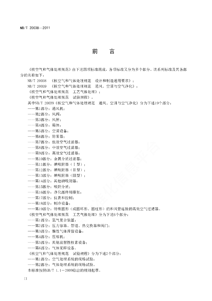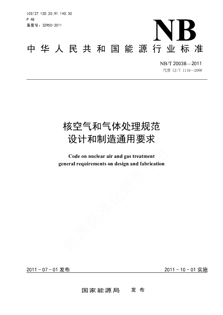 NB/T 20038-2011 核空气和气体处理规范 设计和制造通用要求