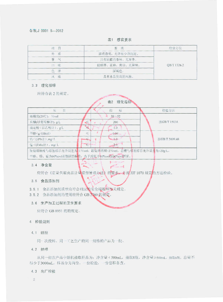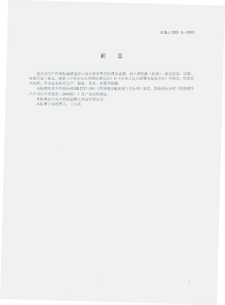 Q/BLJ 0001S-2012 黑松露酒