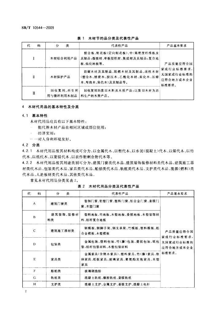 SB/T 10544-2009 木材节约代用品分类