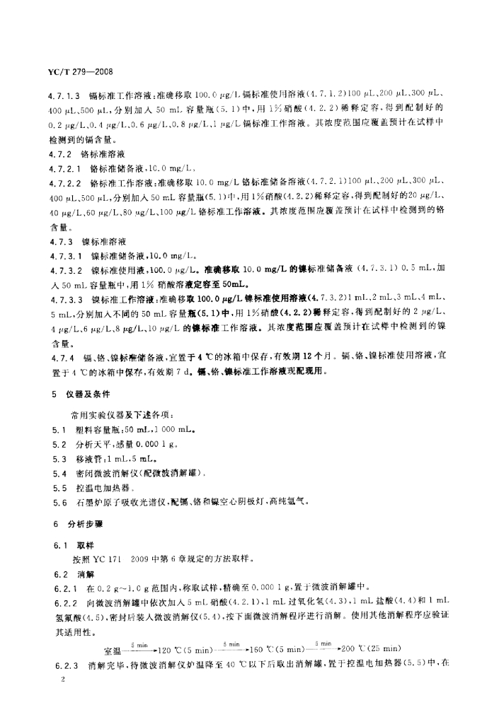 YC/T 279-2008 烟用接装纸中镉、铬、镍的测定 石墨炉原子吸收光谱法