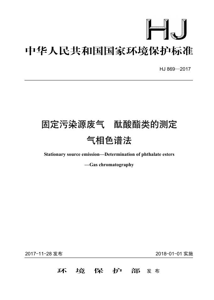 HJ 869-2017 固定污染源废气 酞酸酯类的测定 气相色谱法