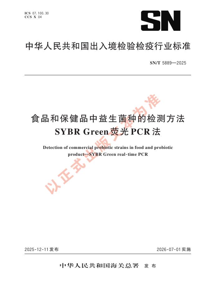 SN/T 5889-2025 食品和保健品中益生菌种的检测方法 SYBR Green荧光PCR法