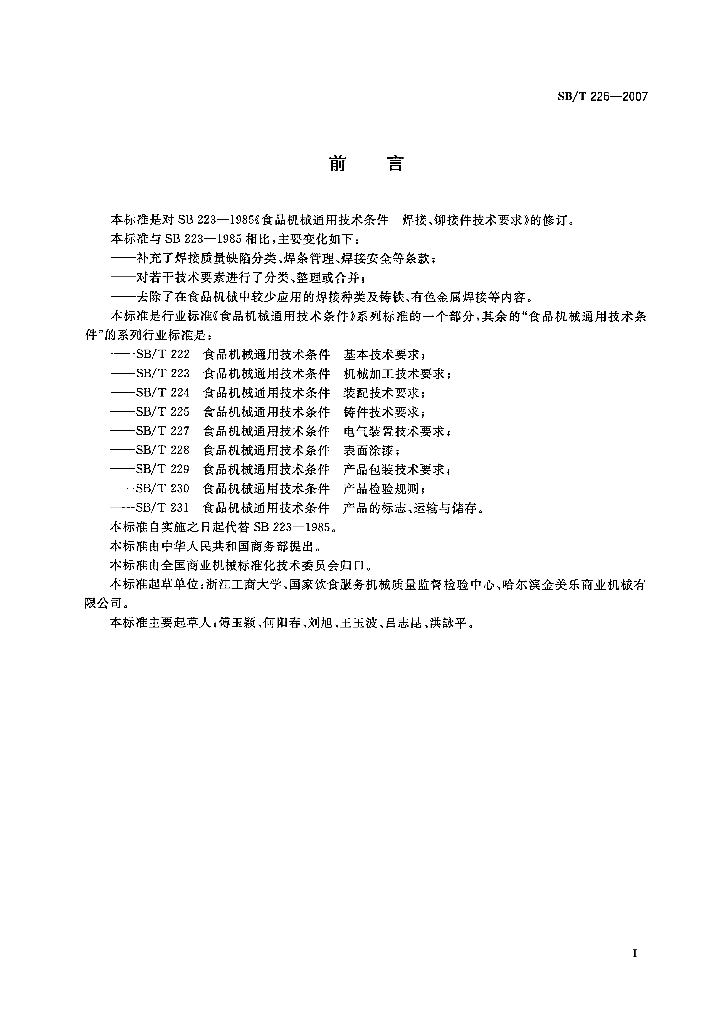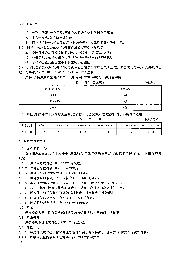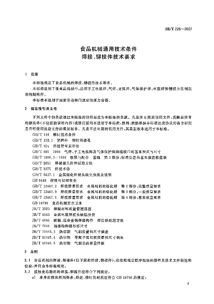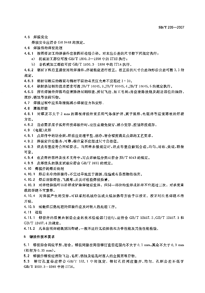 SB/T 226-2007 食品机械通用技术条件 焊接、铆接件技术要求