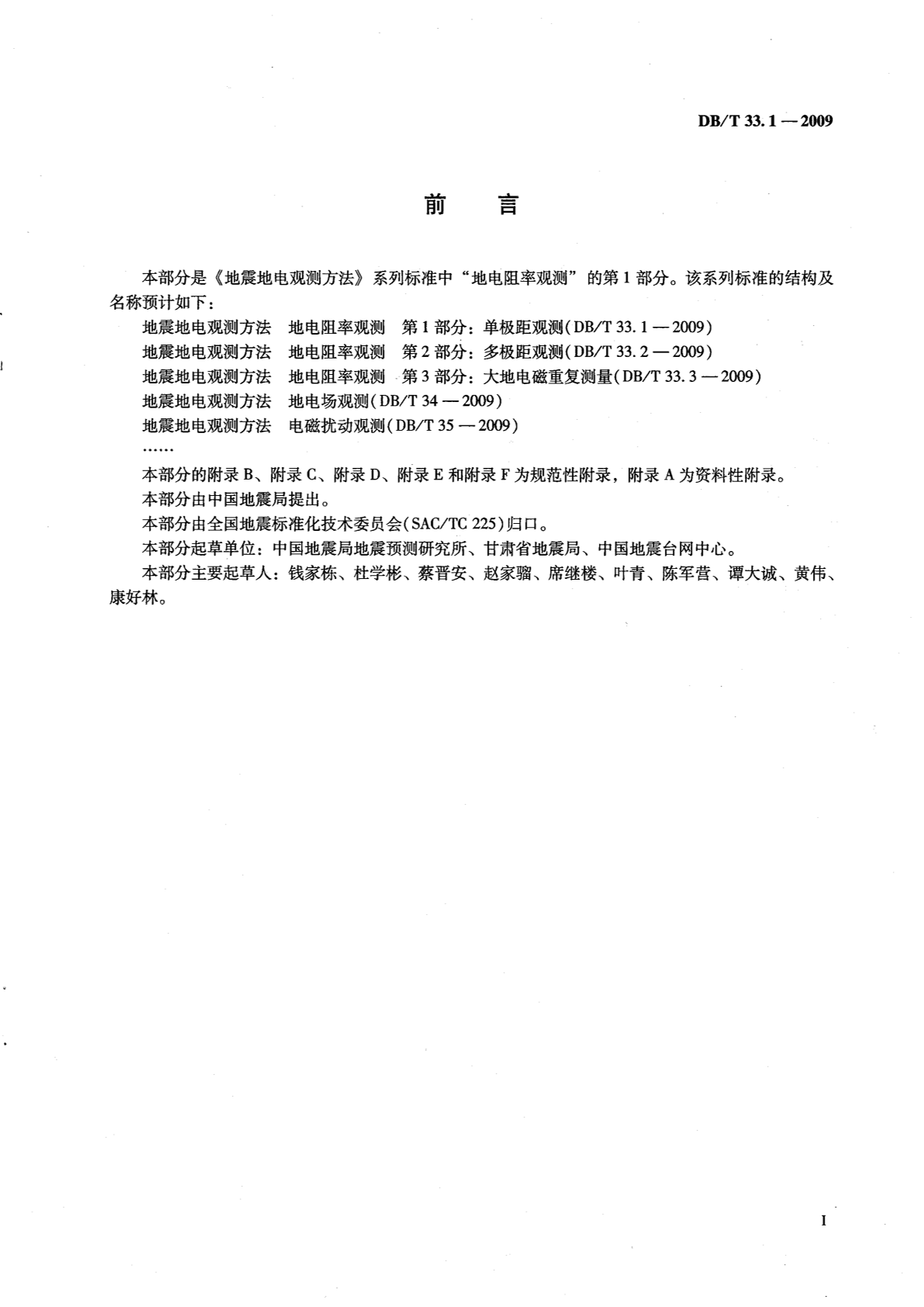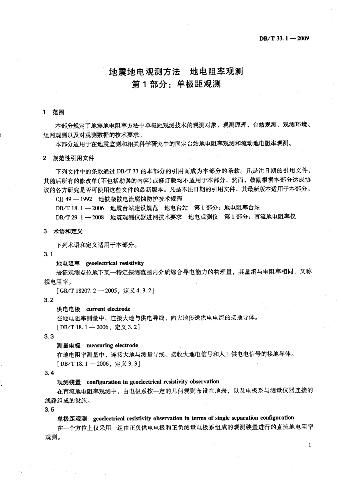 DB/T 33.1-2009 地震地电观测方法 地电阻率观测 第1部分:单极距观测