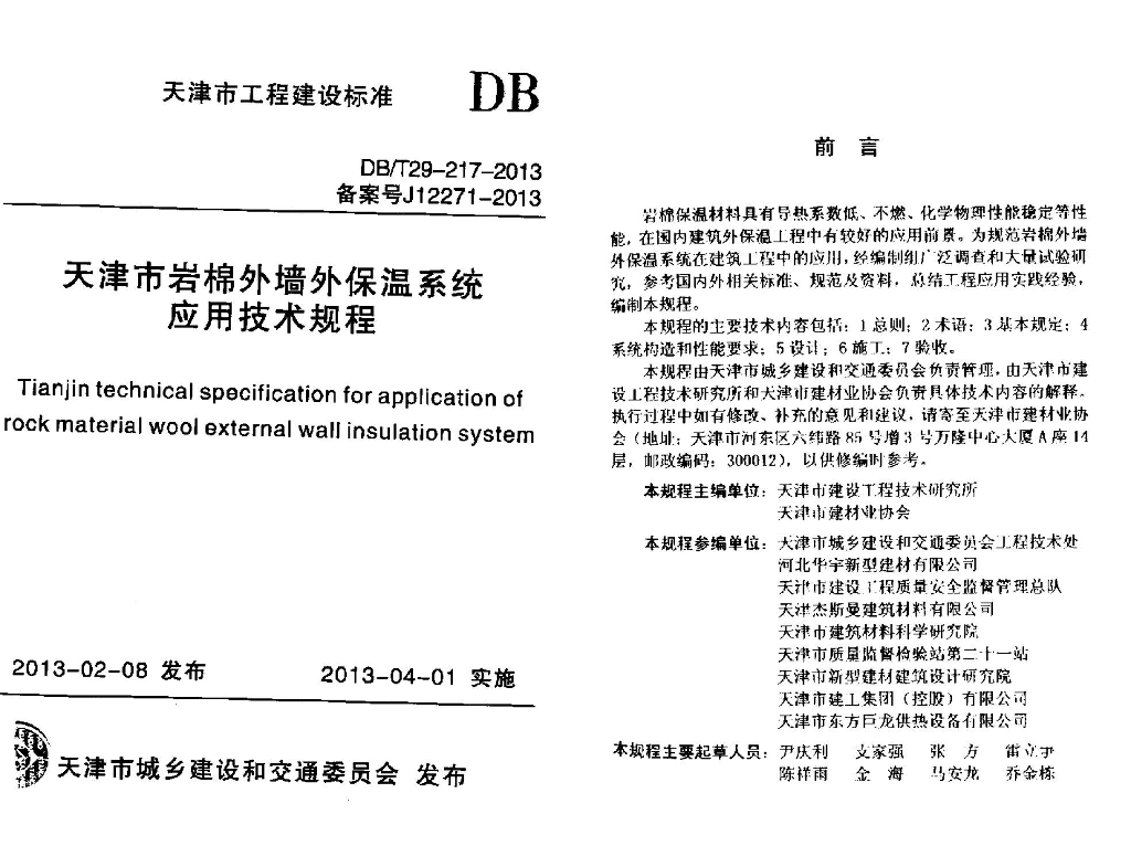 DB/T 29-217-2013 天津市岩棉外墙外保温系统应用技术规程