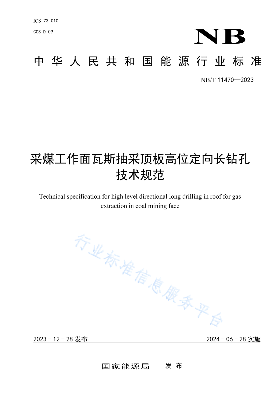 NB/T 11470-2023 采煤工作面瓦斯抽采顶板高位定向长钻孔技术规范