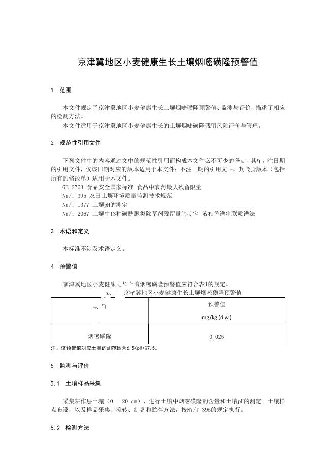 T/BSAS 003-2026 京津冀地区小麦健康生长土壤烟嘧磺隆预警值