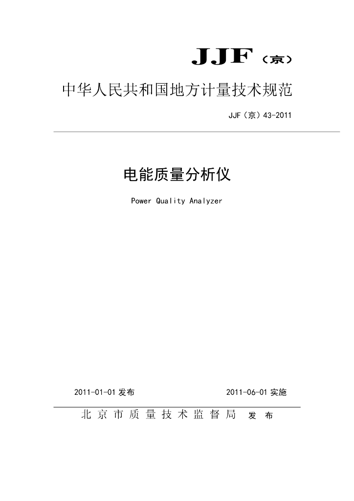 JJF(京)43-2011 电能质量分析仪