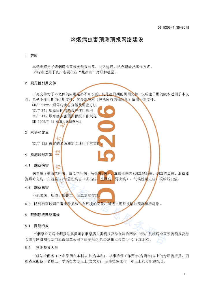 DB5206/T 36-2018 烤烟病虫害预测预报网络建设