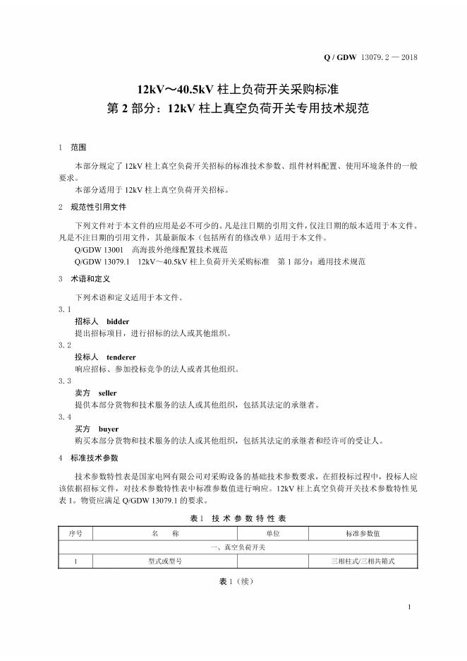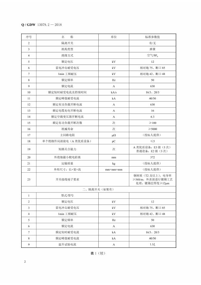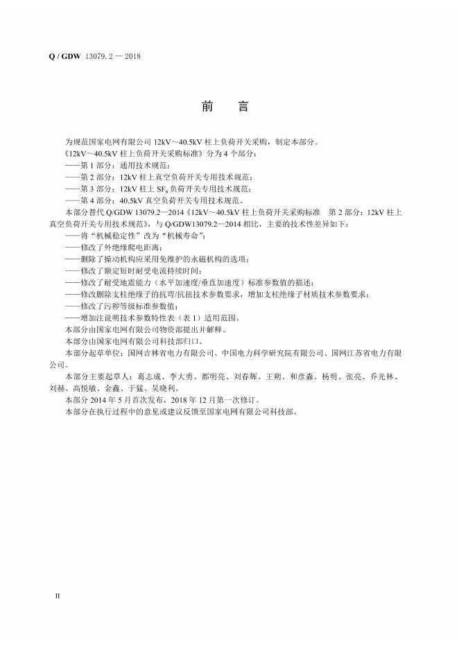 Q/GDW 13079.2-2018 12kV~40.5kV柱上负荷开关采购标准 第2部分:12kV柱上真空负荷开关专用技术规范V
