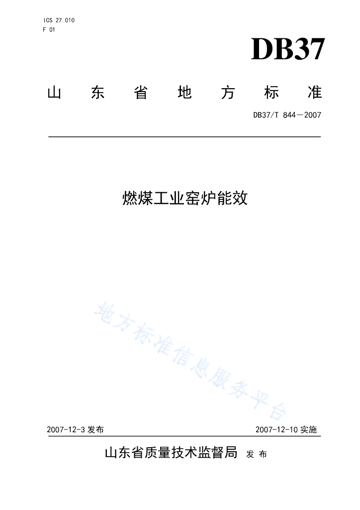 DB37/T 844-2007 燃煤工业窑炉能效
