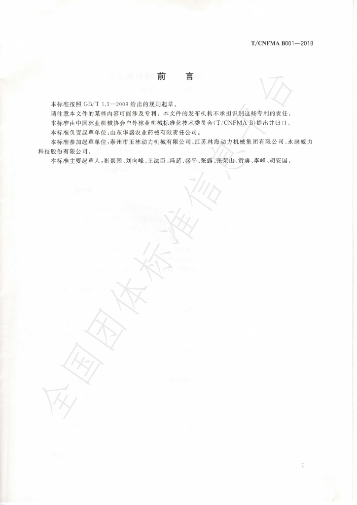 山东华盛农业药械有限责任公司、泰州市玉林动力机械有限公司、江苏林海动力机械集团有限公司、永康威力科技股份有限公司。