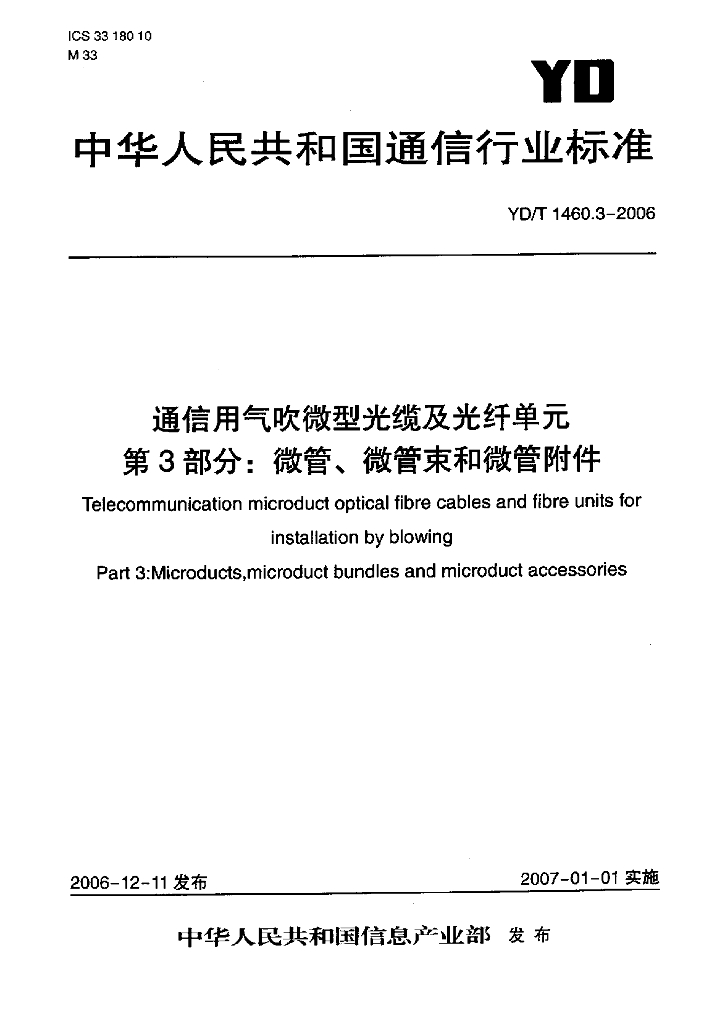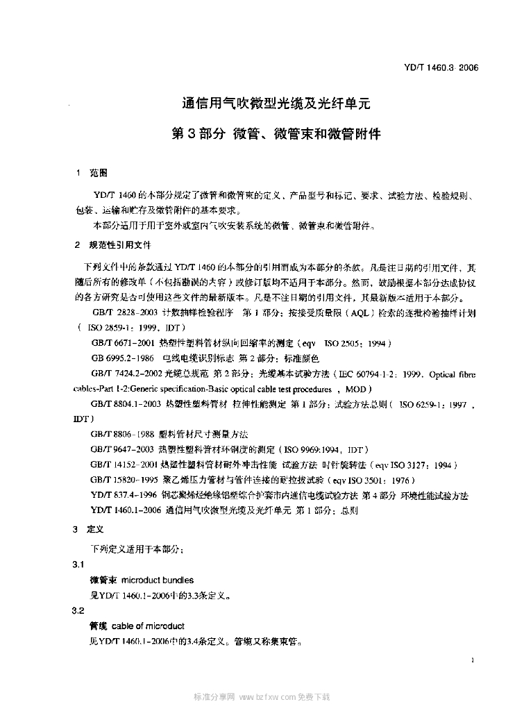 YD/T 1460.3-2006 通信用气吹微型光缆及光纤单元 第3部分:微管、微管束和微管附件
