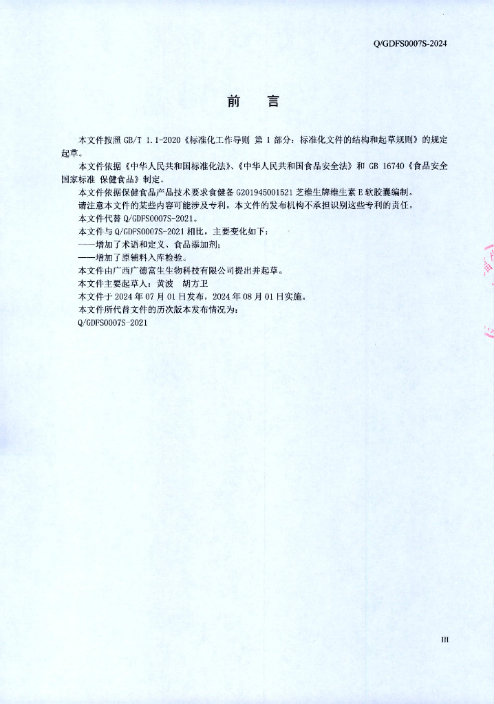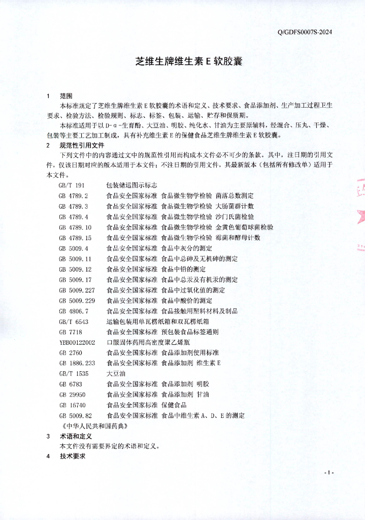 Q/GDFS 0007S-2024 芝维生牌维生素E软胶囊